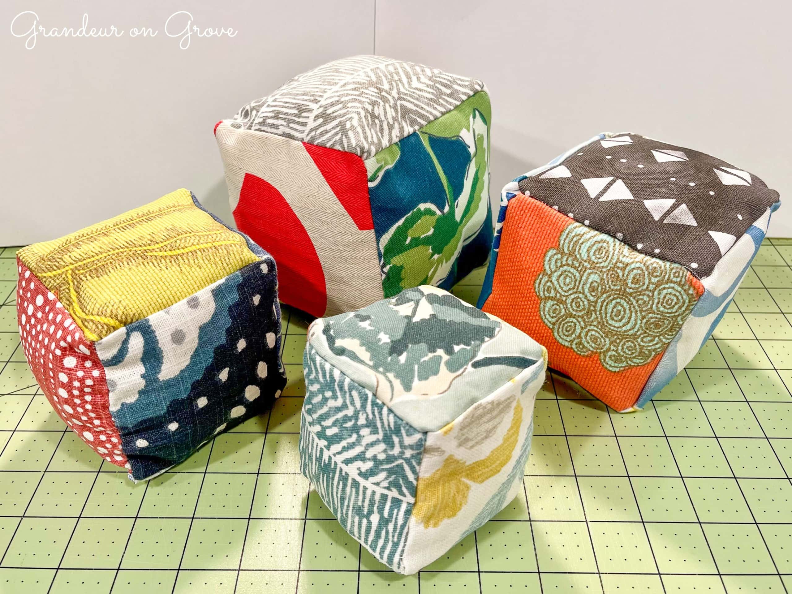 I’m going to be a first-time aunt and godmother and I am very excited! Baby boy is expected in late spring/early summer, so I spent some time this spring sewing a puff quilt for tummy time, some flannel burp cloths, and some baby blocks.