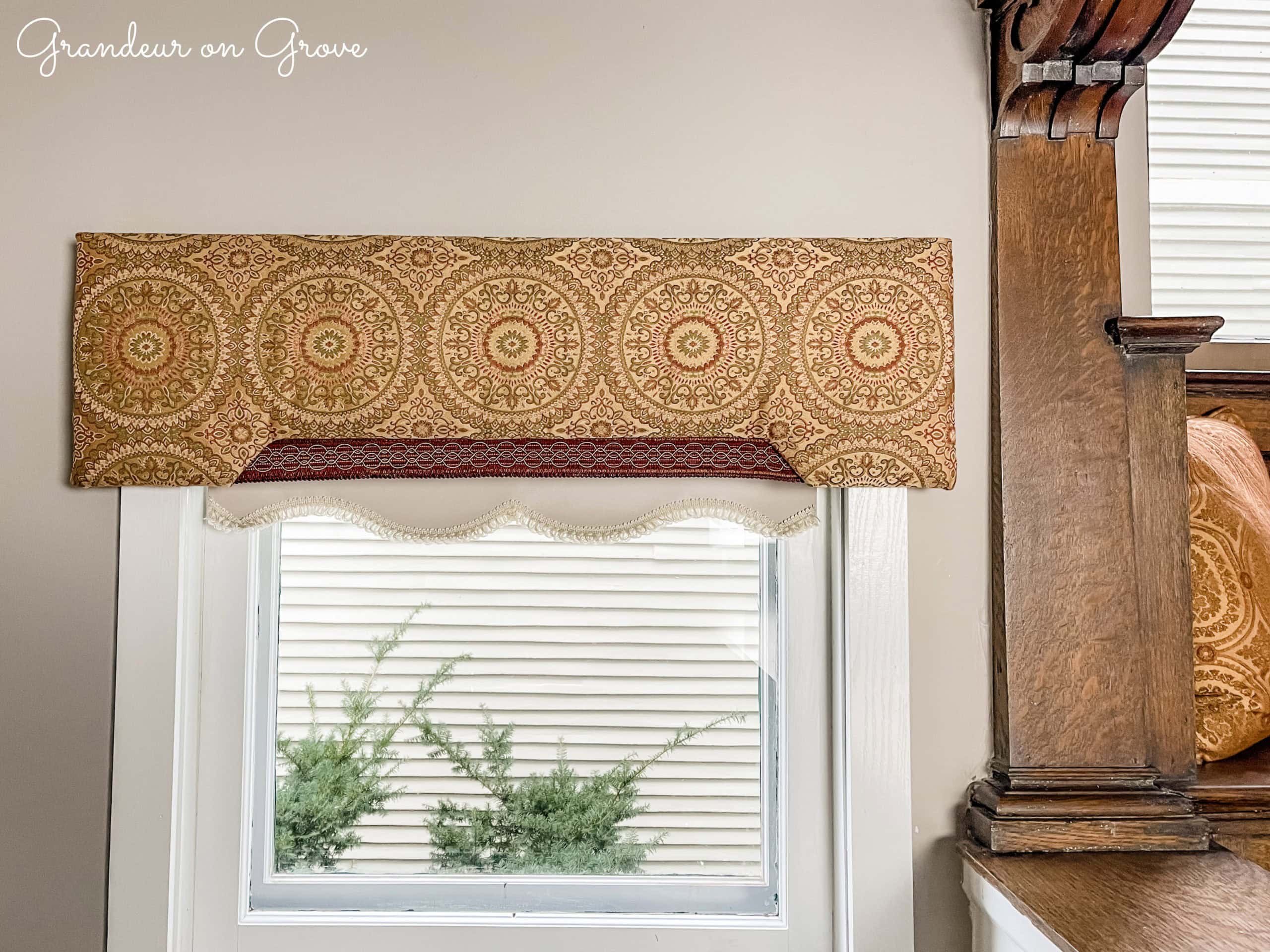 I had some prior experience with cornices. In our previous home, my mother-in-law, Karen, made us a cornice from a kit I found at JoAnn’s. It had stiff corrugated plastic boards as its form. She added batting and upholstery fabric and finished the edges with a beautiful, piped edge.