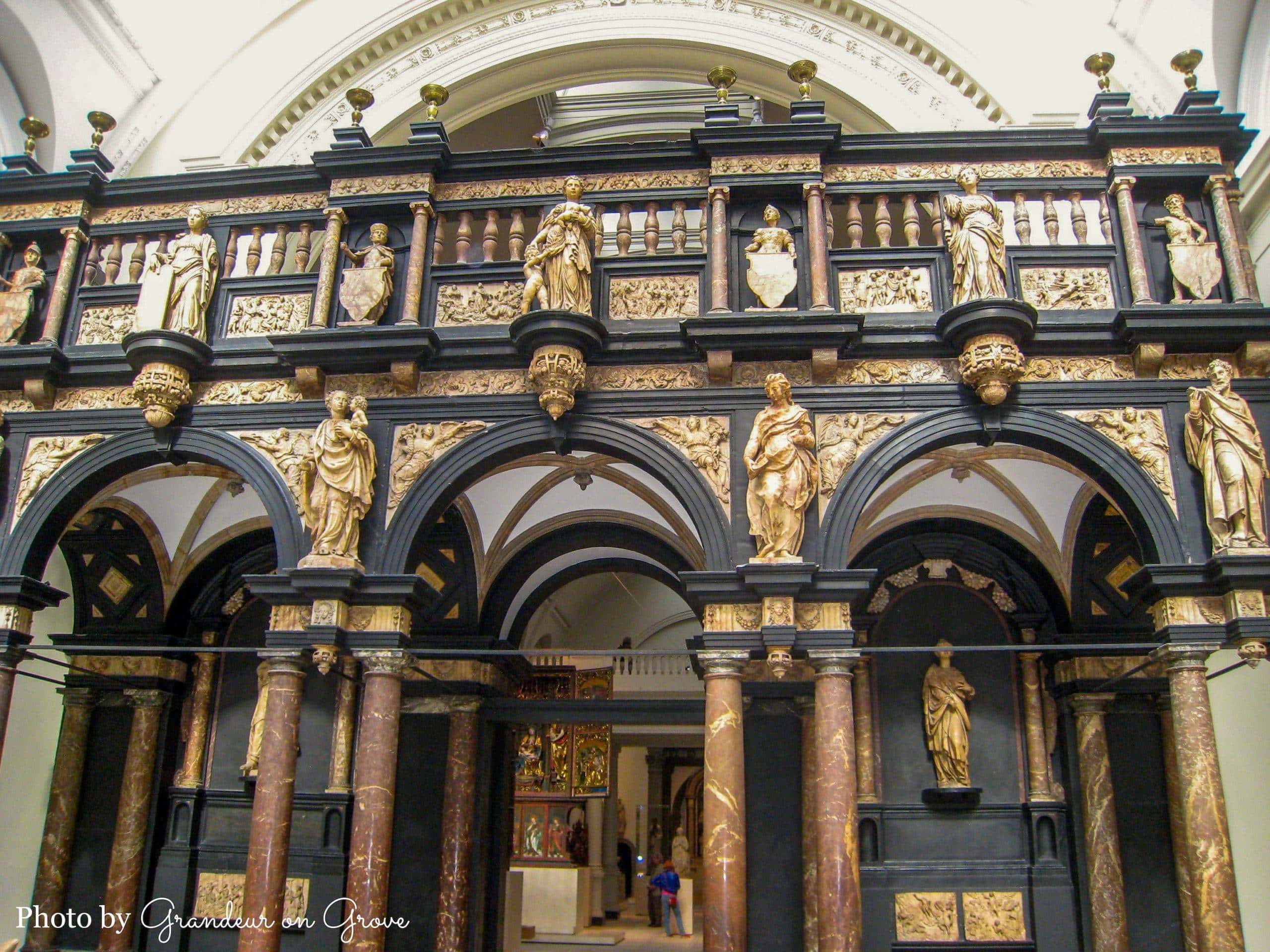 A large arched stained-glass window.