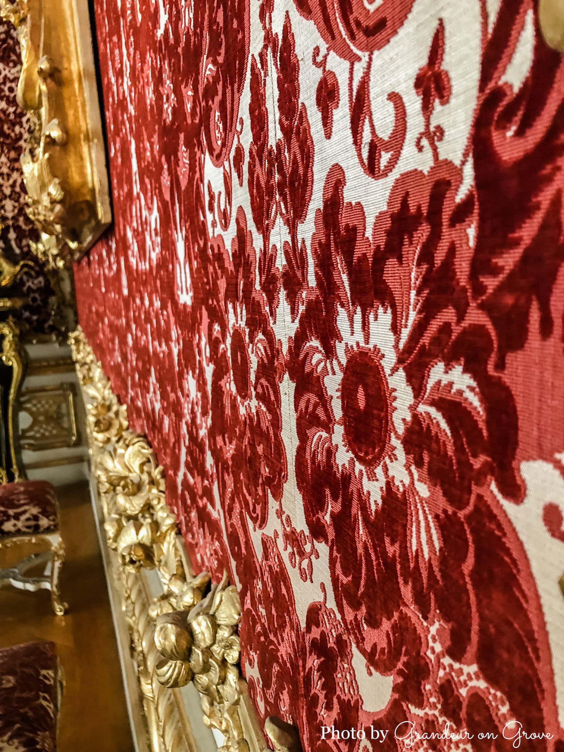 My travels in Western Europe and visits to traditionally decorated homes and castles have made a big impression on my decorating style and experience. One of my favorite decorative delights is viewing the textiles used in luxurious homes. I’m particularly fond of the textural and visual impact of soft, plush velvets and smooth, shiny silks and the lovely patterns and contrasts they create. While my home is nowhere near as luxurious as those showcased here, I do try to incorporate some velvet, grasscloth, partial-silk curtains, and other texture-varying features into my rooms.